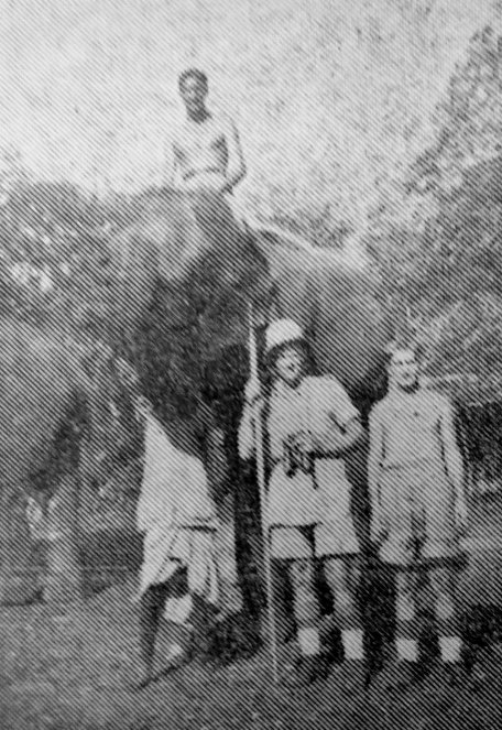 The man astride the elephant is Pte. Jack Nicholls, of 45, Church Street, Swinton. The picture was taken in Ceylon, where Nicholls has been stationed for two years.