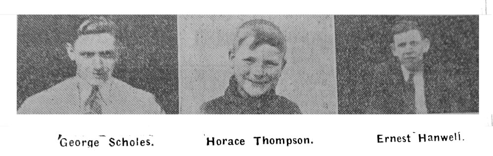Hanwell came out of Fullerton Hospital. Denaby, a week ago after being treated for thirteen weeks with a severely crushed leg. Scholes’s arm is paralysed through a cut extending from the palm of his right hand to the middle of the forearm, and he underwent considerable pain in pulling out of the water both Hanwell and Thompson.